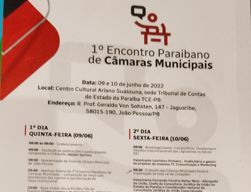 O vereador presidente da câmara de vereadores de Aguiar Marcos Dantas Pedro participa neste momento de uma reunião um encontro de presidentes de câmaras municipais. Na cidade de João pessoa a convite da CONALEC E DA CAMARA DE VEREADORES DE JOÃO PESSOA. DISCUTINDO SOBRE VARIOS TEMAS. FINANCAS PUBLICAS, OS DESFIOS DAS CAMARAS MUNICIPAIS, A NOVA LEI DE LICITACOES, TRANSPARENCIA E INTERACAO COM O CIDADÃO